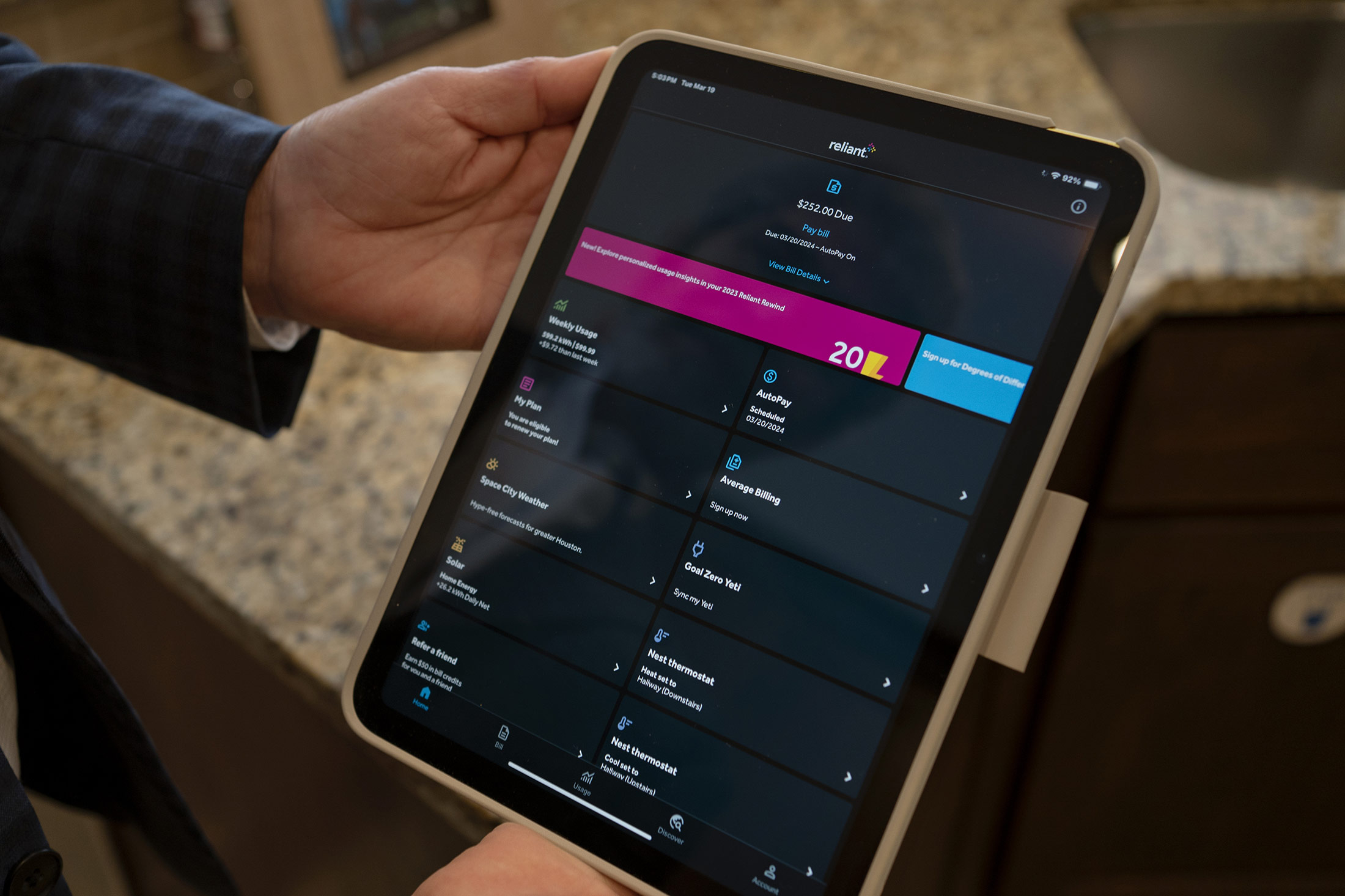 Such controls generally aren’t sold to consumers as standalone gadgets. Instead they’re based on capabilities embedded into storage batteries, solar system components, thermostats and more. An app on a phone or tablet connects wirelessly and lets the homeowner set preferences for how the home energy system works—letting the utility, for example, remotely turn up the thermostat by 1F (0.6C) during periods of high demand for air conditioning in the summer. For a home with solar and batteries, the system can also enable the homeowner to sell power into the grid, earning utility bill credits or even payments from some service providers. The app may also tie in a constellation of smart appliances as well as a smart breaker panel, which tracks and controls how much power is used by different circuits, as on a smart-home tour presented by Houston utility NRG Energy Inc. in March.